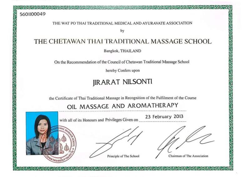 Die Kunst der traditionellen Thaimassagen habe ich an der renommierten WATPO TRATITIONAL MEDICAL SCHOOL in Bangkok erlernt.
